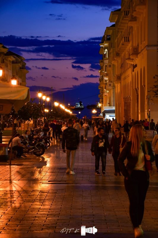 Description: Πλατεία Αριστοτέλους λίγο μετά τη δύση του ηλίου και αφού αρχίζει να κάνει την εμφάνισή της η νύχτα.